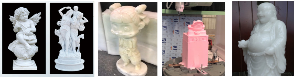 1). Stone Sculpture and Artistic Carving: Ideal for producing 3D stone statues, figurative sculptures, and relief artworks, where multi-angle detailing and undercut processing are required.
