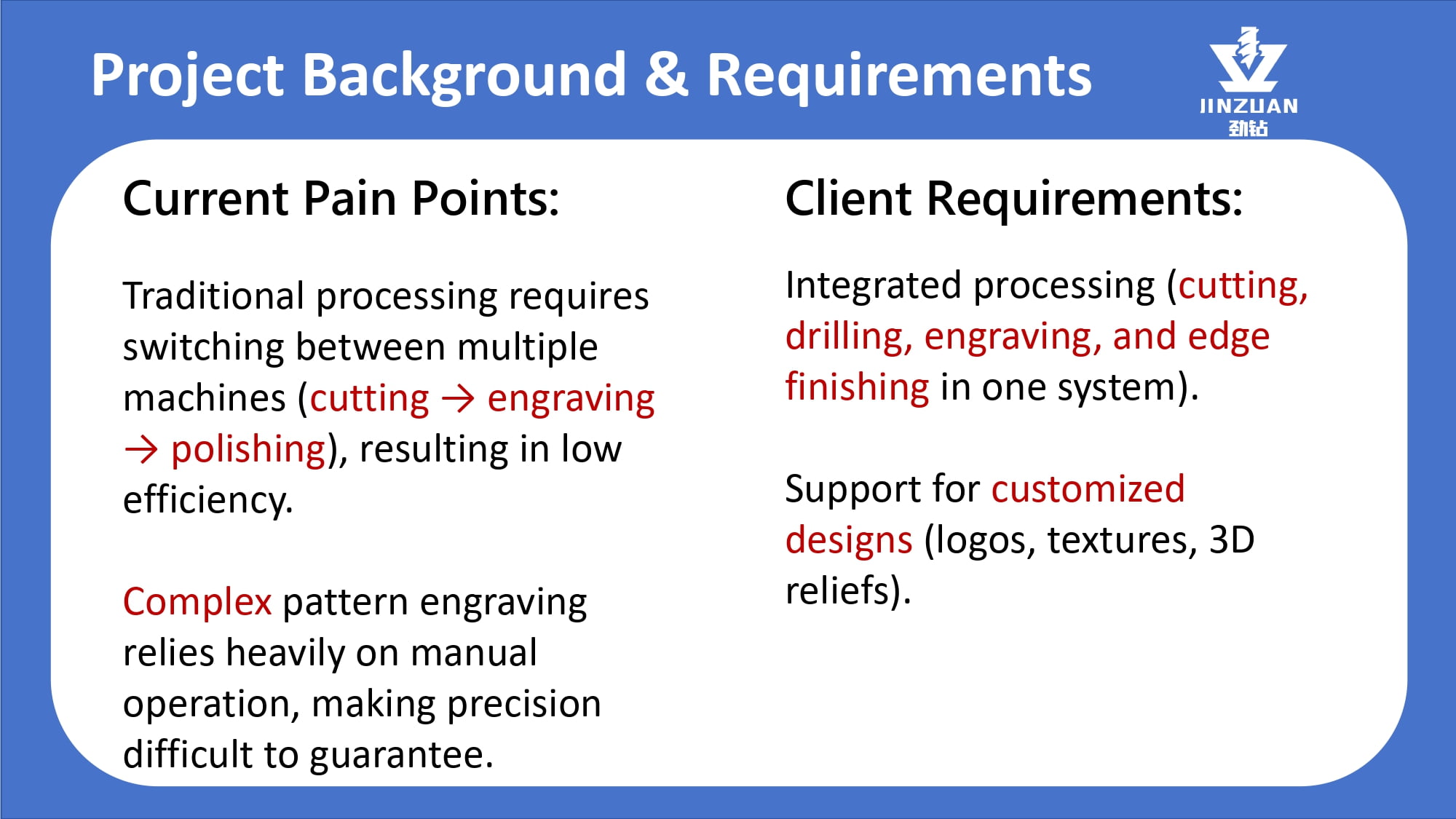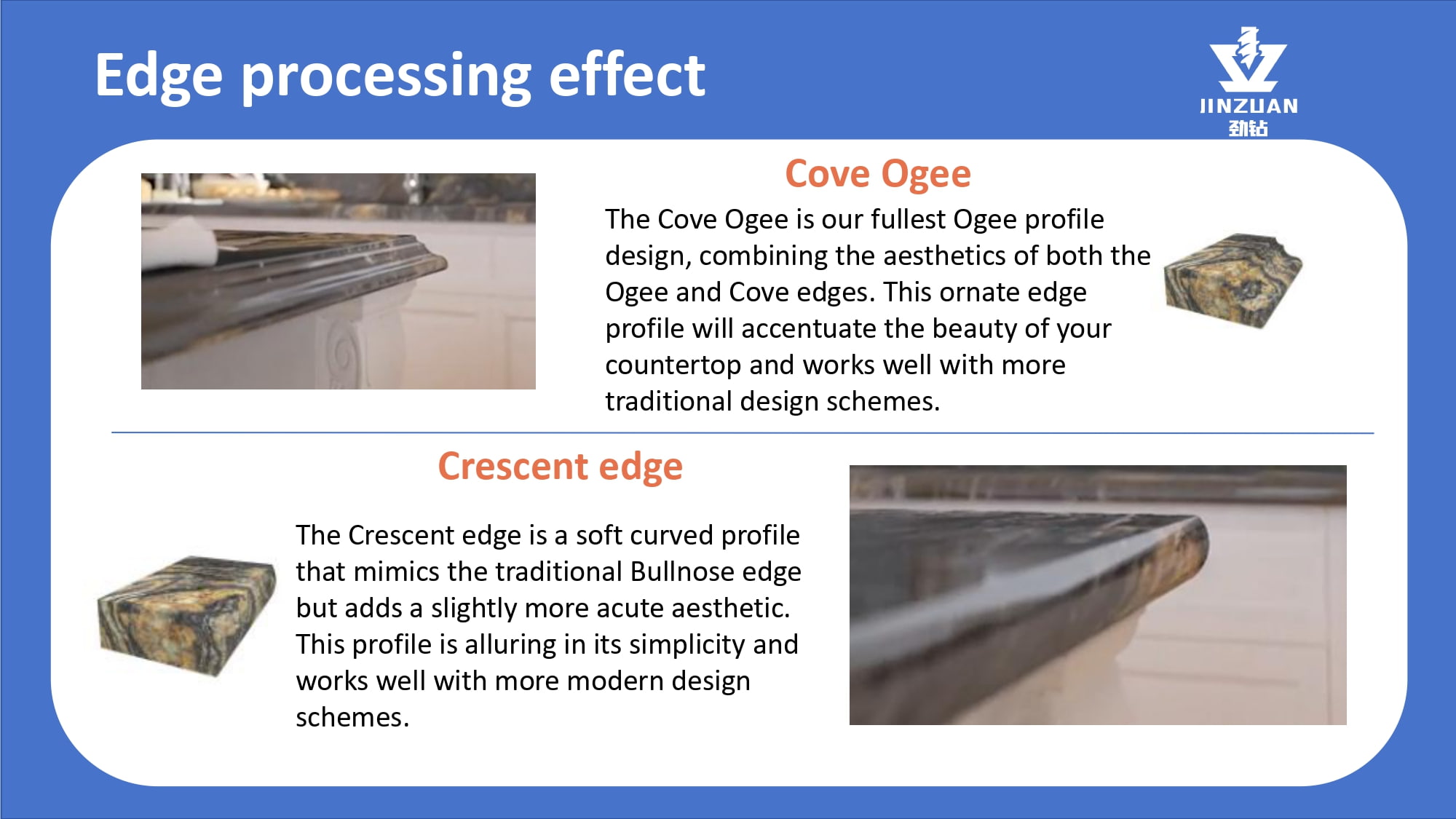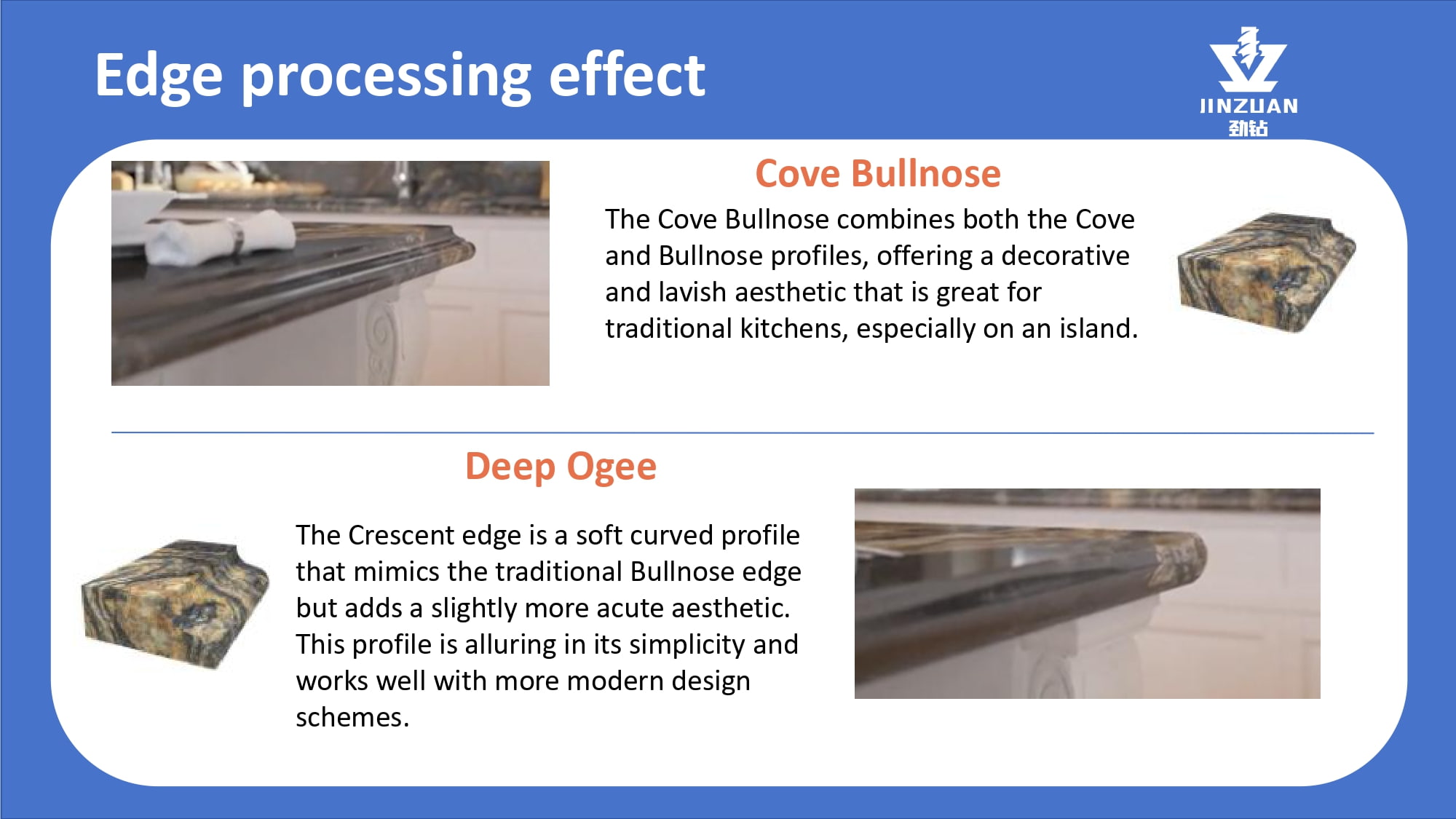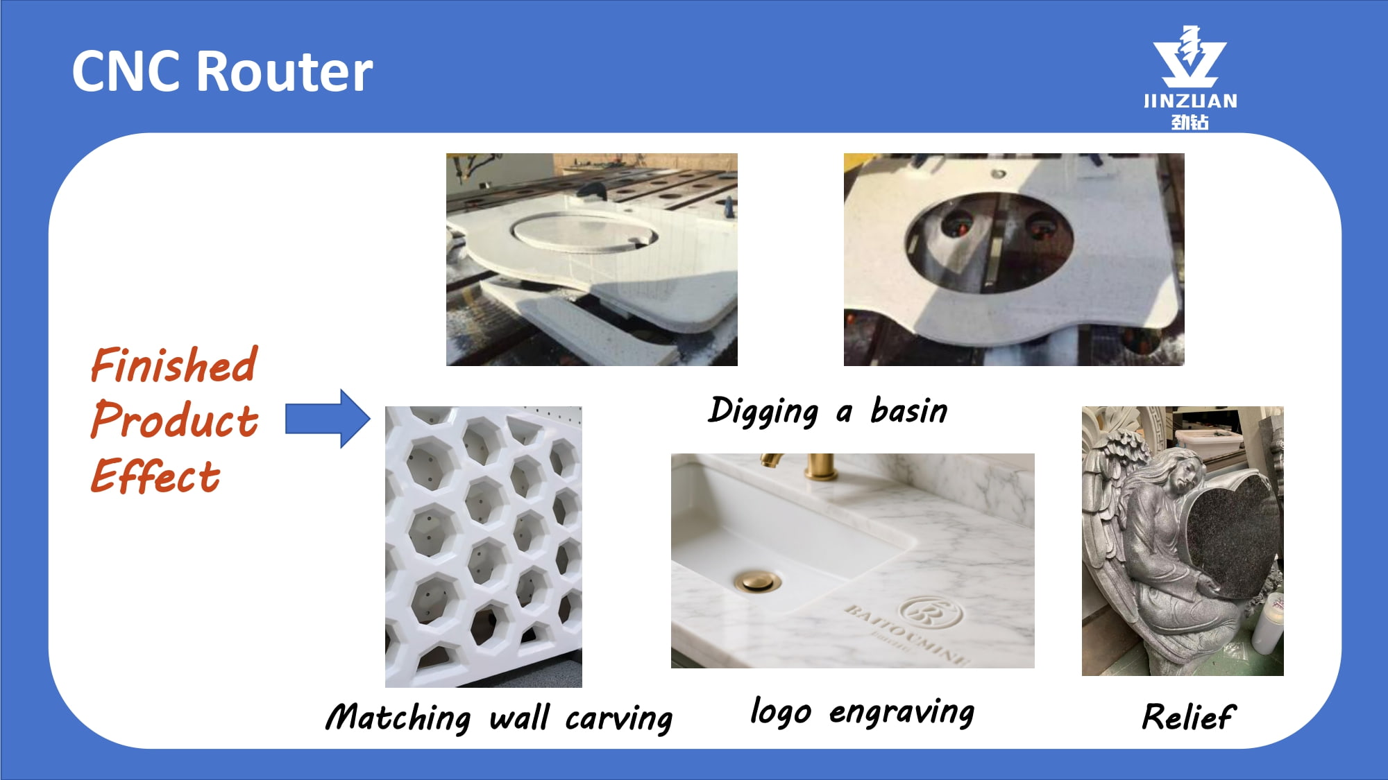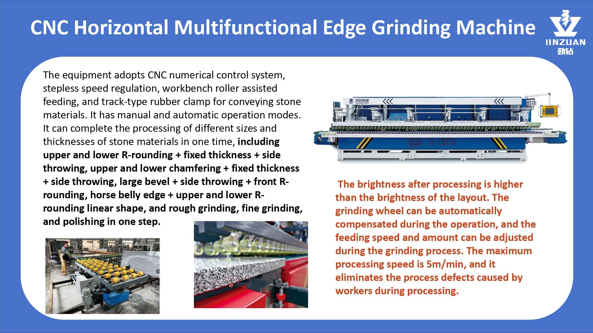 Quanzhou Jingzuan Technology Co.,LTD provides a technology-driven fabrication solution that empowers workshops to achieve unmatched precision, elevate finish quality, and significantly boost their production capacity for materials like granite, quartz, marble, and acrylic solid surfaces.